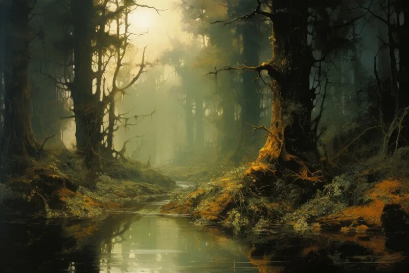 Plakát Twilight Mist Forest Stream
