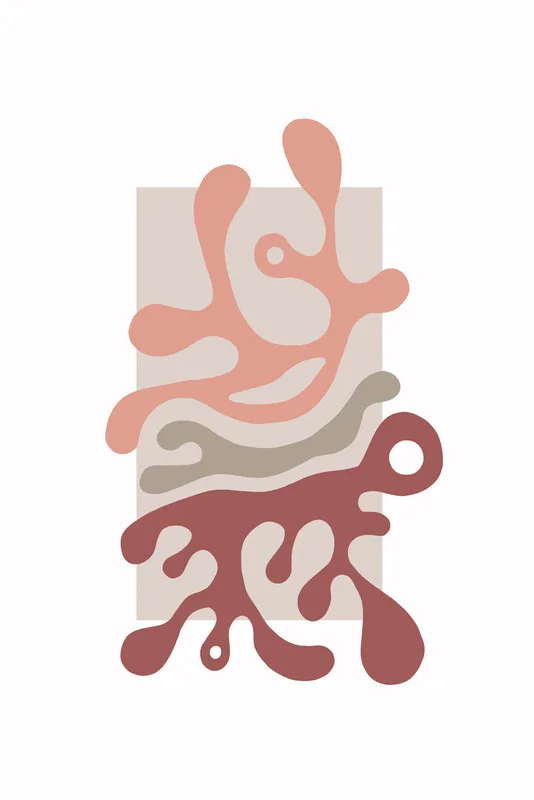 Modern abstract design with flowing, dynamic shapes. A mix of rhythm, floating figures and surreal movements can be discovered.