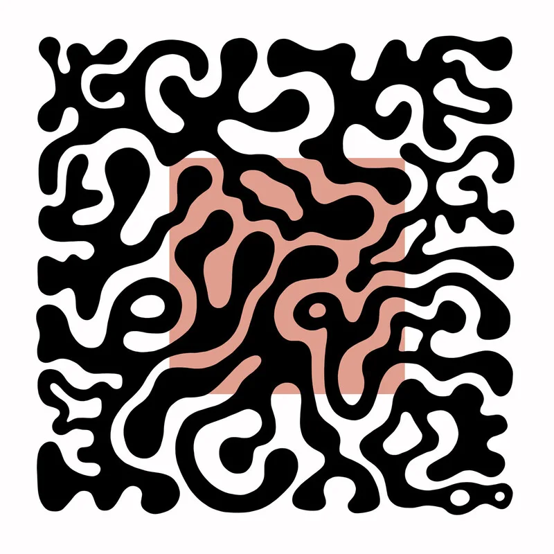 Modern abstract design with flowing, dynamic shapes. A mix of rhythm, floating figures and surreal movements can be discovered.
