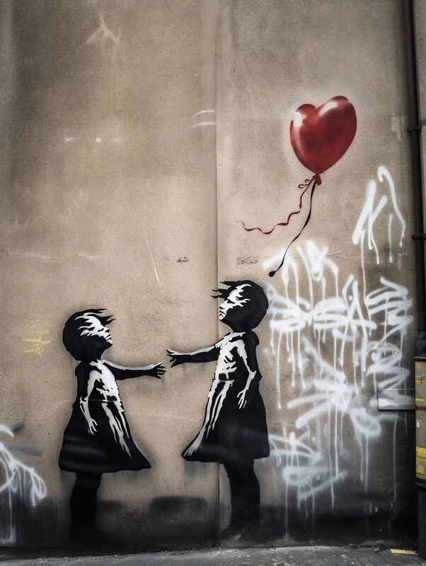 Obraz na plátně Two girls and a Balloon , Banksy style