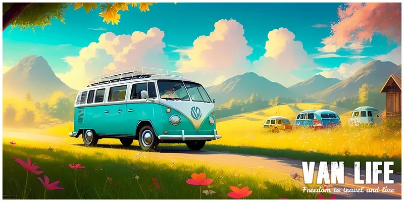 Samolepka VAN LIFE: Camper Hippie Surfer Peace Retro Travel Style #3
