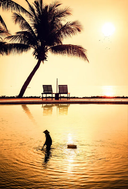 Obraz na plátně Vietnamese_fisherman_in_pool