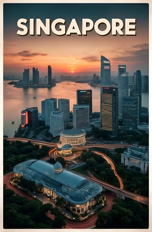 Samolepka Vintage Aerial Illustration of Singapore: Iconic Skyline