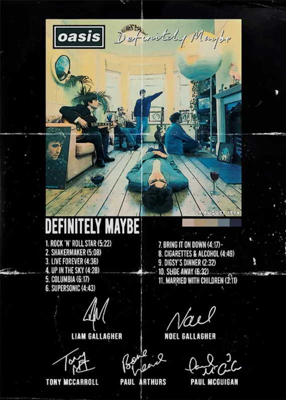 Obraz na plátně Vintage Album Cover Definitely Maybe Oasis Music Popular