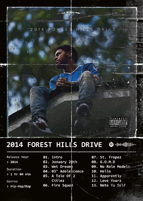 Obraz na plátně Vintage Album Cover J Cole Forest Hills Drive Popular Poster