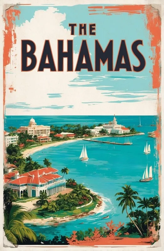 Samolepka Vintage Bahamas Illustration for Coastal Lovers
