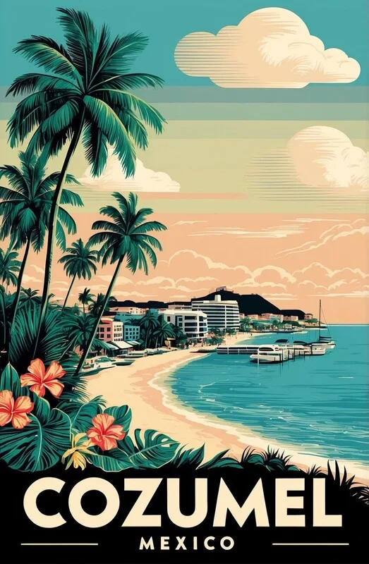 Plakát Vintage Cozumel Art Print for Tropical Decor