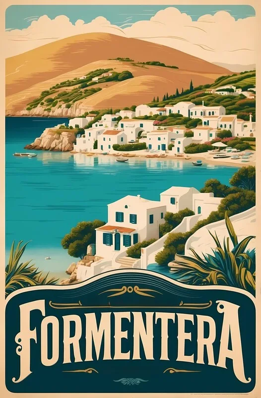 Obraz na plátně Vintage Formentera Art Print with Mediterranean Charm
