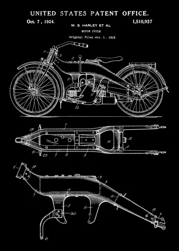 Plakát Vintage Harley-Davidson Motorcycle Patent from 1924