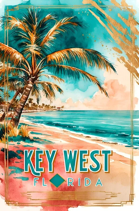Samolepka Vintage Key West Illustration – Classic Art of Tropical Para