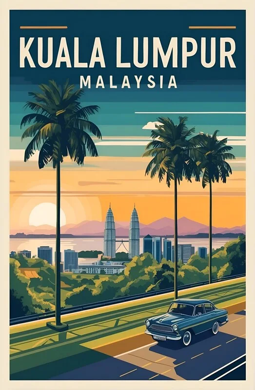 Plakát Vintage Kuala Lumpur Travel Poster: Iconic Urban Scenes
