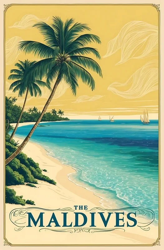 Obraz na plátně Vintage Maldives Illustration Capturing Paradise Vibes
