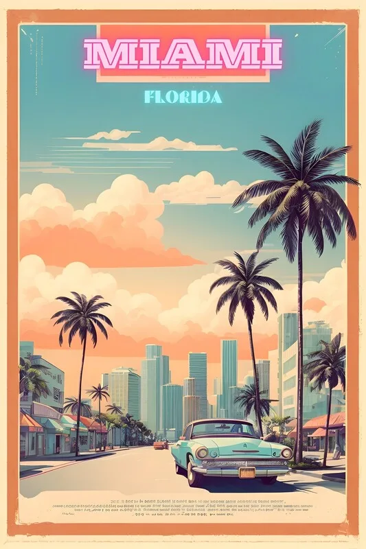 Samolepka Vintage Miami Poster: Retro Vibes from the Magic City