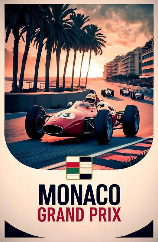 Obraz na plátně Vintage Monaco Grand Prix Poster: Timeless Racing Legends