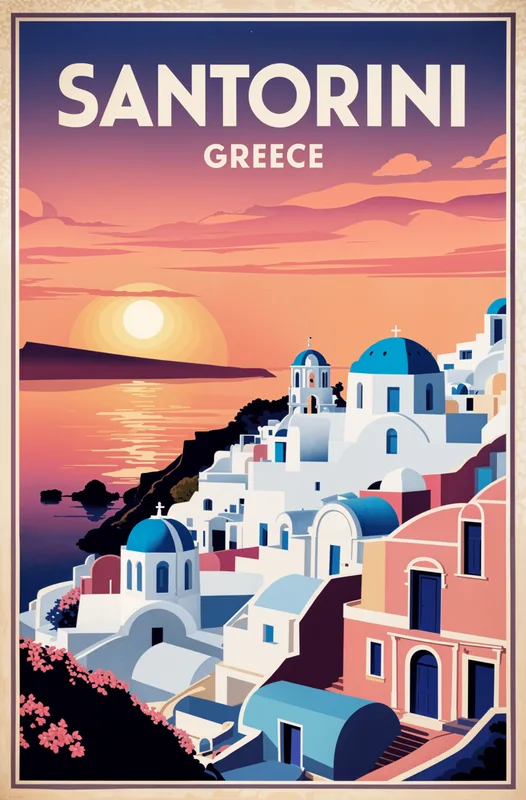 Obraz na plátně Vintage Santorini Illustration | Greek Island Art Print