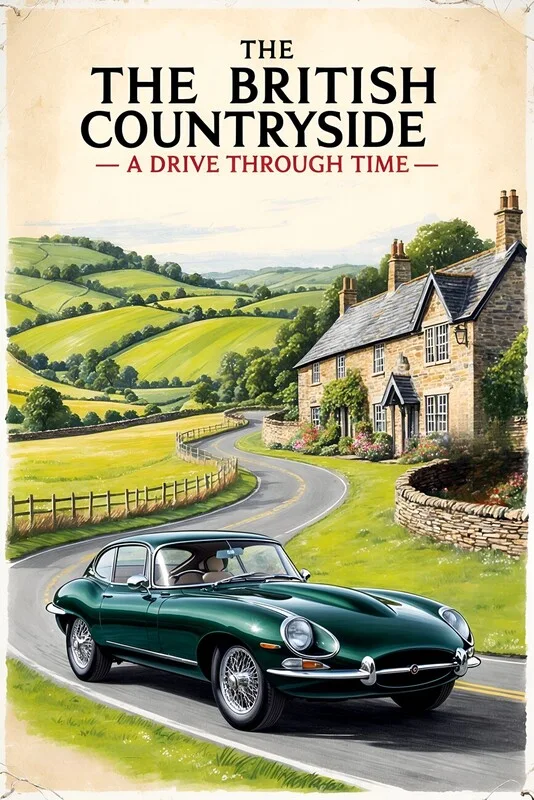 Plakát Vintage Travel British Countryside: A Drive Through Time