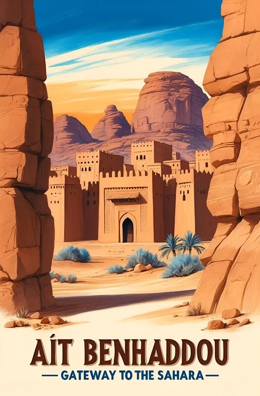 Obraz na plátně Vintage Travel Poster Ait Benhaddou: Gateway to the Sahara
