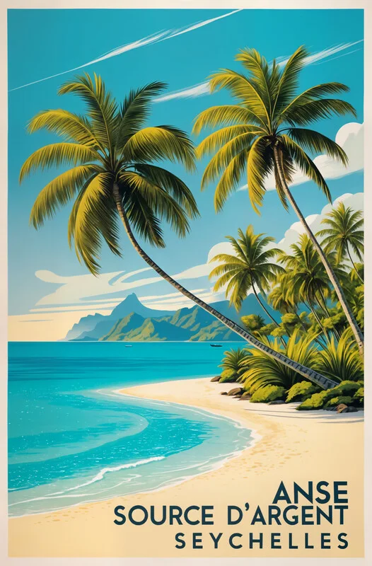 Plakát Vintage Travel Poster: Anse Source D'Argent Seychelles