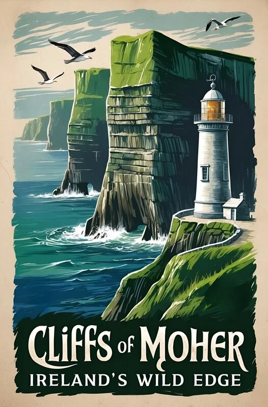Samolepka Vintage Travel Poster Cliffs of Moher: Ireland's Wild Edge