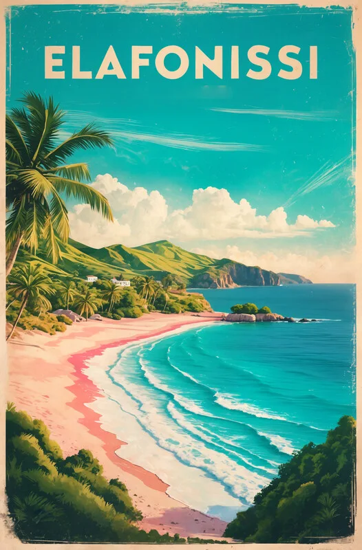 Samolepka Vintage Travel Poster: Elafonissi Greece