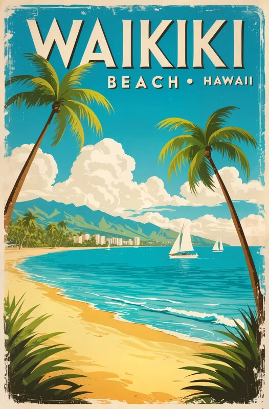 Obraz na plátně Vintage Travel Poster: Waikiki Beach Hawaii