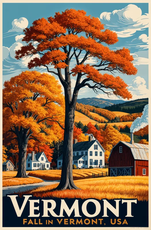 Plakát Vintage Vermont Fall Illustration | Autumn Landscape Art