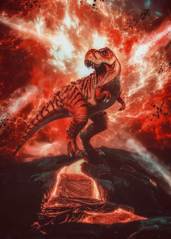 Obraz na plátně Volcanic Eruption T-Rex end of Dinosaurs