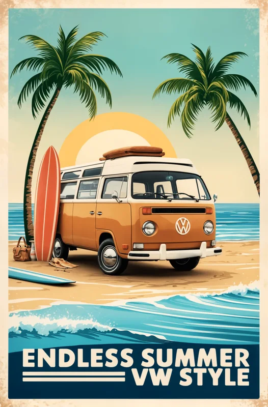 Samolepka VW Campervan Poster: 1970s Endless Summer