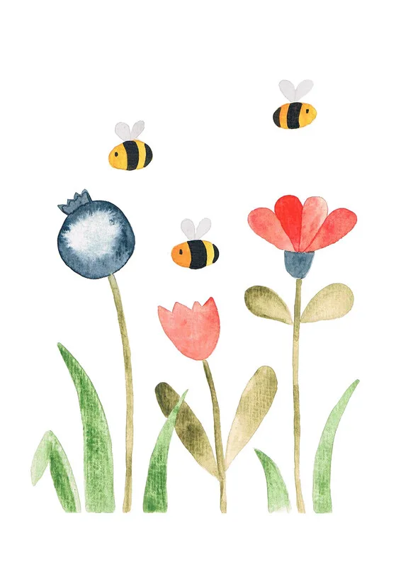 Obraz na plátně Watercolor flowers and bees