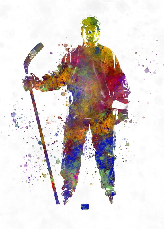 Obraz na plátně Watercolor ice hockey player