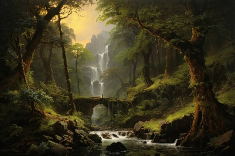 Obraz na plátně Waterfall In Forest Scene