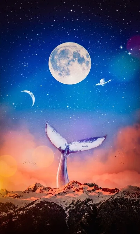 Plakát Whale Tail and moons in the clouds mountains