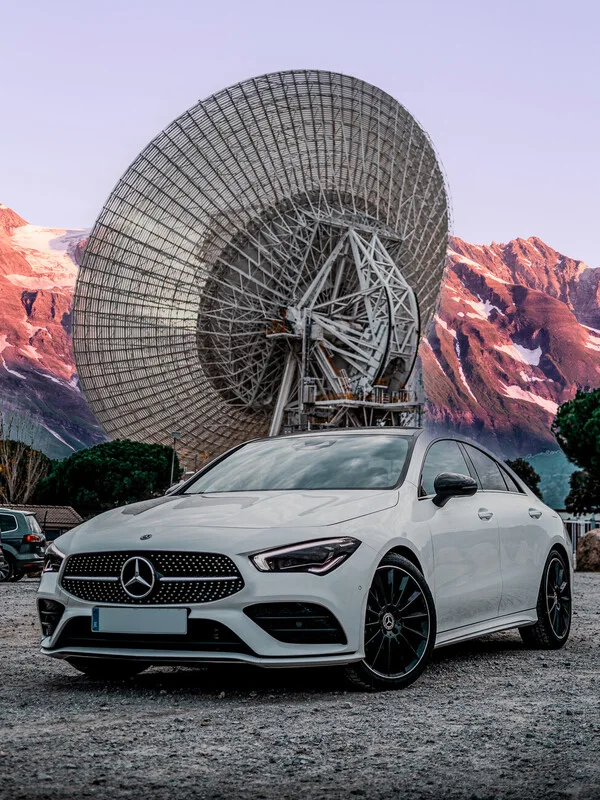 Obraz na plátně White Car in the Front of a Satelite