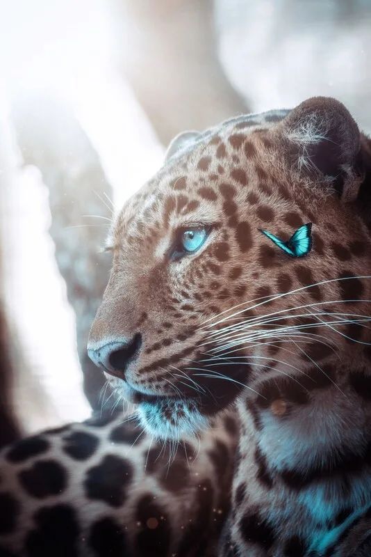 Samolepka Wild leopard and blue butterfly