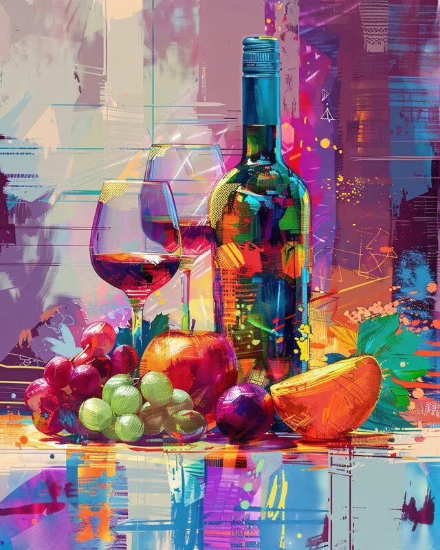 Obraz na plátně Wine & fruit, Eclectic painting, canvas & poster art prints