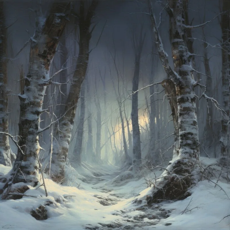 Obraz na plátně Wintry Birch Forest Path
