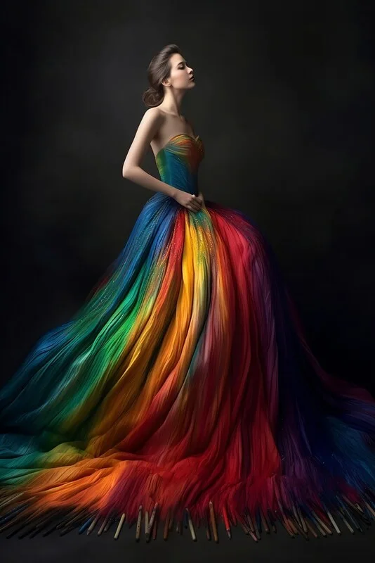Plakát Woman in couture ball gown made out of watercolored pencils