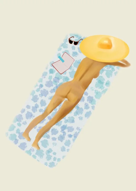 Plakát Woman painting bathing naked on beach relaxing vaccation