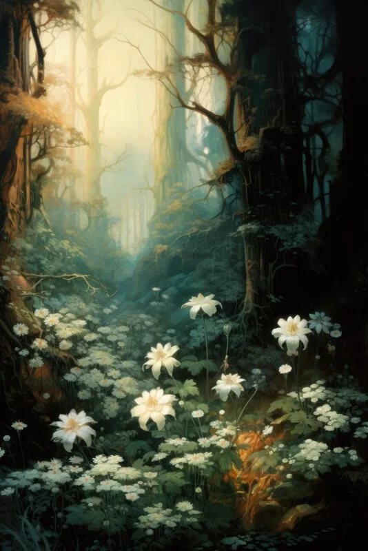 Obraz na plátně Woodland Dawn Blossoms Ethereal Light