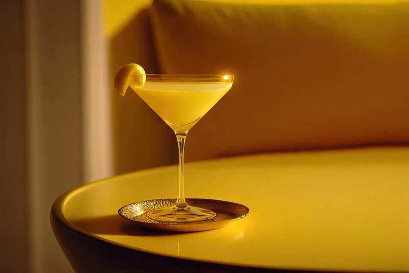 Obraz na plátně Yellow cocktail glass in a yellow luxury interior
