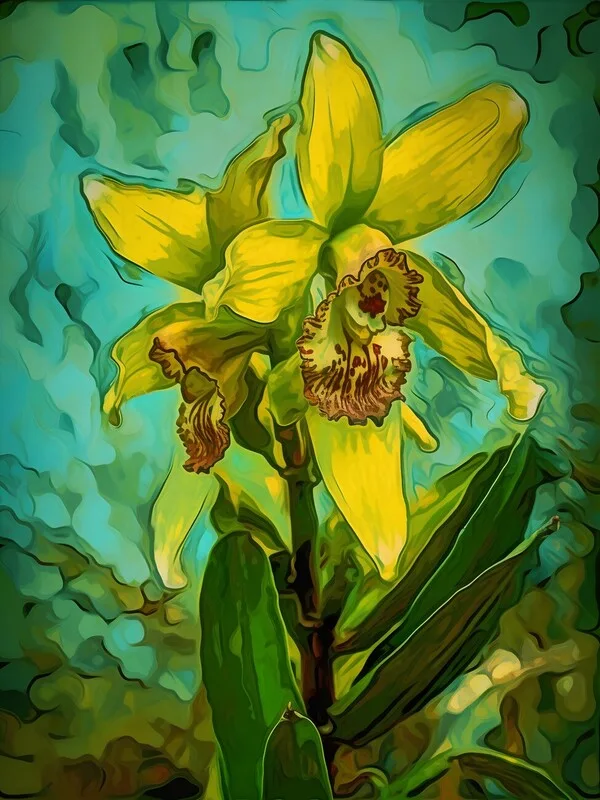 Obraz na plátně Yellow Orchid Van Gogh Style