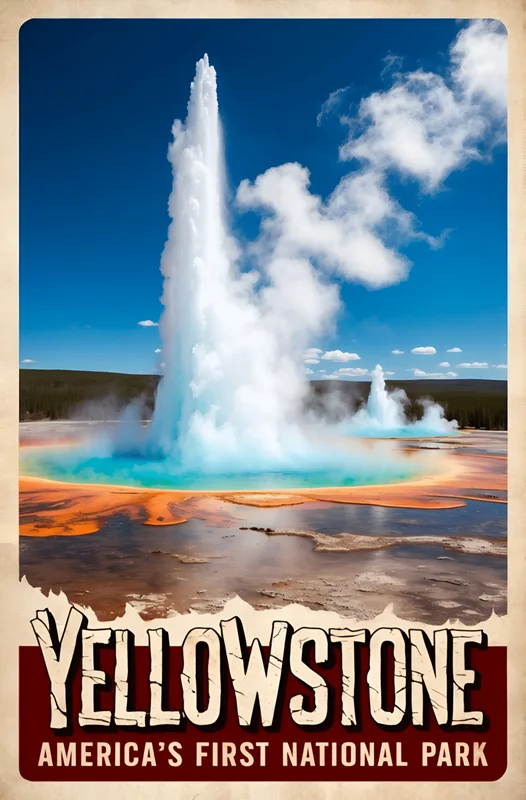 Samolepka Yellowstone Vintage Travel Poster - America's Beauty Park