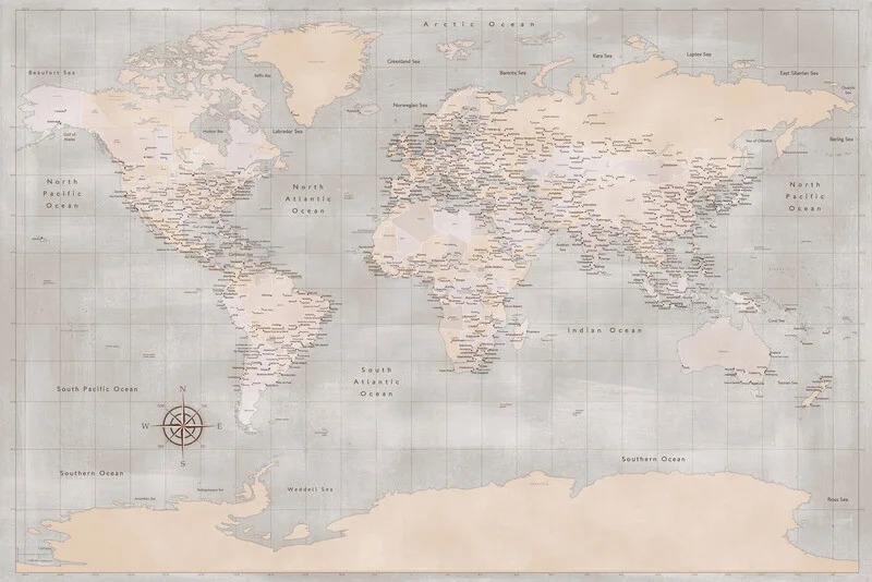 Obraz na plátně Zalika world map with cities and Antarctica