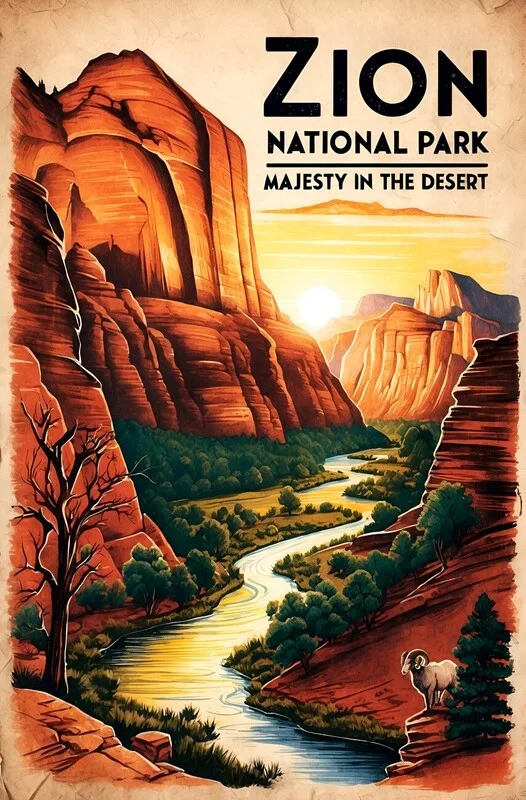 Obraz na plátně Zion National Park: Timeless Beauty in a Vintage Design