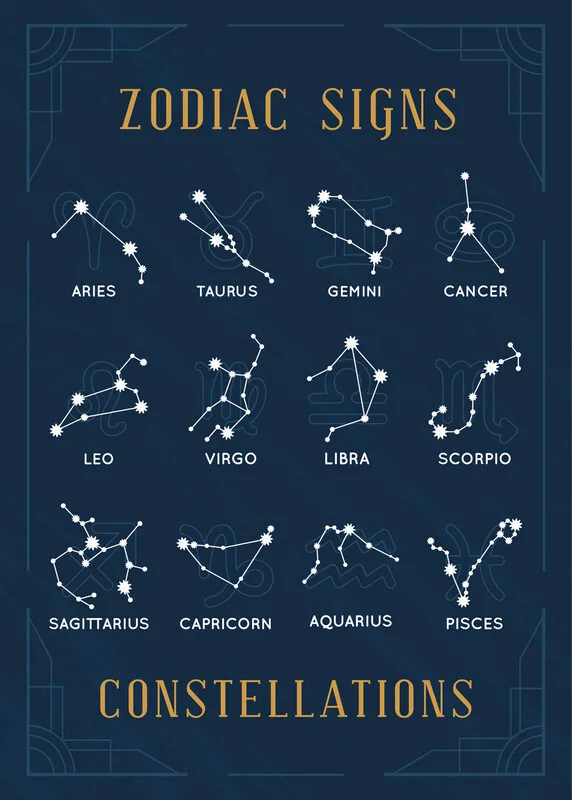 Zodiac Signs Constellations Sternzeichen Poster with 12 Zodiac Signs for every Cosmic Space Star Lover...