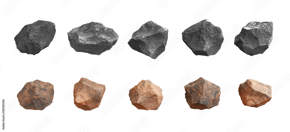 Fotografie Mars rock group and meteorite extraterrestrial copper and black dark surface texture rough raw stone objects mountain rock volcanic, coal, asteroid