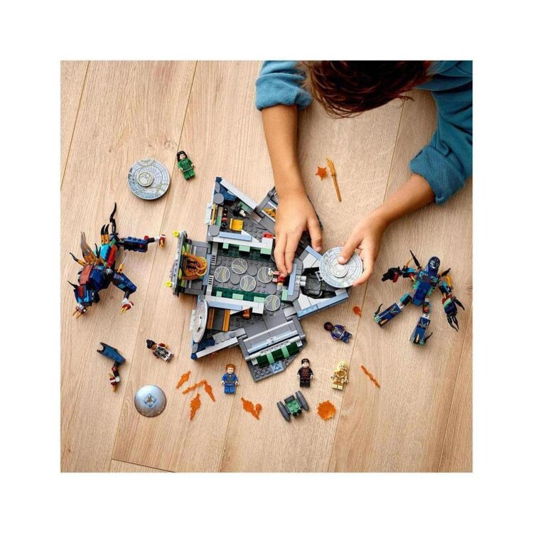 Stavebnice Vzestup Doma (76156) od LEGO® Marvel dětem umožní prozkoumat propracovaný interiér kosmické lodi Eternalů a následně si přehrát závěrečnou bitvu se 6 minifigurkami superhrdinů a 2 zlými Devianty. Stavebnice s kosmickou lodí a superhrdinskými bitvami Pokud hledáte novou hračku pro své dítě, nabídněte mu tuto stavebnici s bitevními loděmi. Uvidíte, že si ji zamiluje. Děti se mohou připojit k 6 Eternalům – Makkari, Ikarisovi, Theně, Sersi, Druigovi a Phastosovi – a prozkoumat jejich úžasnou vesmírnou loď. Je zde možnost vytáhnout nahoru 3 strany a získat tak přístup ke kokpitu, místnosti se zbraněmi, laboratoři a dalším prvkům. Ale když se objeví zlý vůdce Deviantů se svým komplicem, budou je děti muset porazit pomocí vesmírné lodi! Pokud hračku kupujete pro fanouška minifigurek, upozorňujeme, že tato LEGO sada jako jediná obsahuje minifigurky Druiga a Phastose! Sady na motivy filmu Eternals studia Marvel – parádní stavebnice se superhrdiny Stavebnice s Eternaly od LEGO Marvel jsou plné akce a obsahují parádní minifigurky, které inspirují malé kreativce a hodí se jako vánoční či narozeninové dárky.