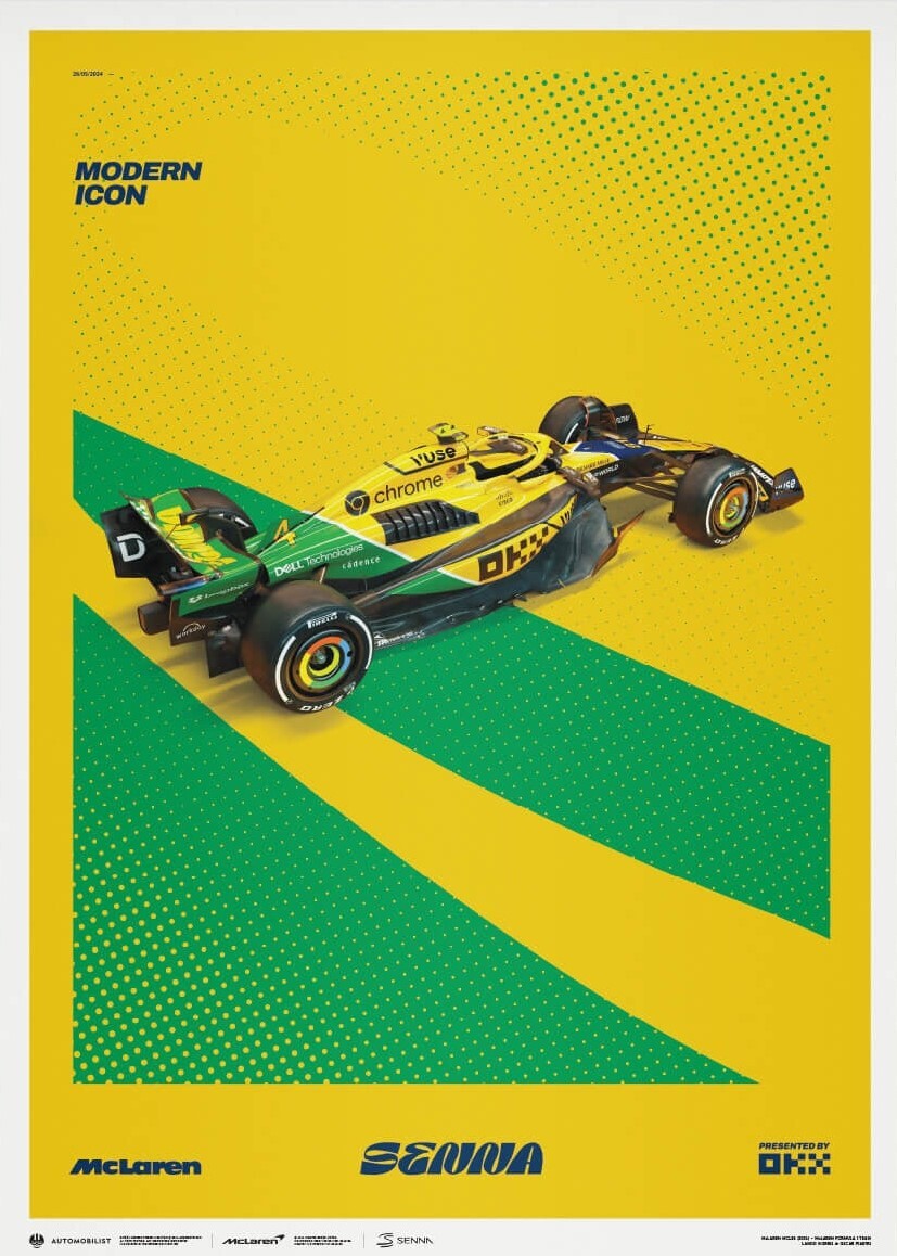 Continuing the celebration of Ayrton Senna after honouring the legend at Imola last week, McLaren is set to pay another heartfelt tribute at the 2024 Monaco Grand Prix with a special 'Modern Icon' livery inspired by Senna's iconic yellow helmet with blue and green stripes, beautifully reflecting his Brazilian heritage. Painted on the MCL38s driven by Lando Norris and Oscar Piastri, this design will grace the track throughout the entire Grand Prix weekend.