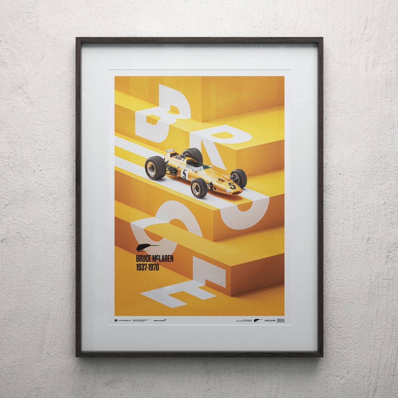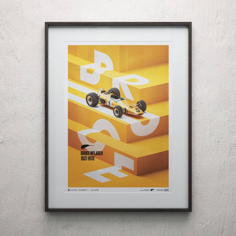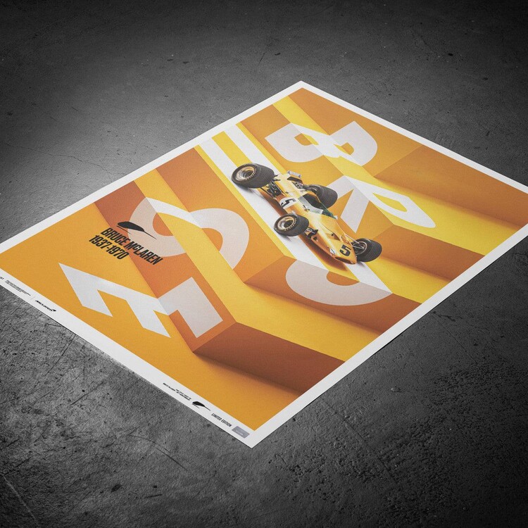 BRUCE McLAREN REMEMBERED On 2 June 1970, a young Bruce McLaren’s growing career was cut short due to an unfortunate incident during testing. The poster features his car from his lone F1® win - in Belgium, at the Spa-Francorchamps Circuit on 9 June 1968. According to the convention of the time, his cars should have been a mix of the New Zealand national colours of green, black and silver, but the papaya was adopted in 1968, when Bruce had begun to see how Americans publicised and marketed their racing activities with bright paint schemes. On the occasion of the 50th Anniversary of his passing, McLaren and Automobilist pay tribute to the charm and charisma of the man who’s name continues to inspire fans worldwide and the team at the Woking facility of McLaren. For all of our posters we use high quality off-set printing, premium paper, and vibrant color reproduction that stands the test of time – just like the cars themselves. Each one is limited and labeled with a special hologram sticker to denote its authenticity.