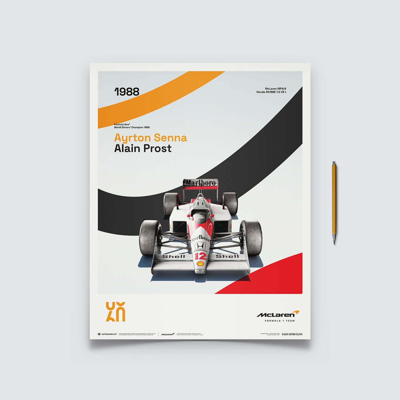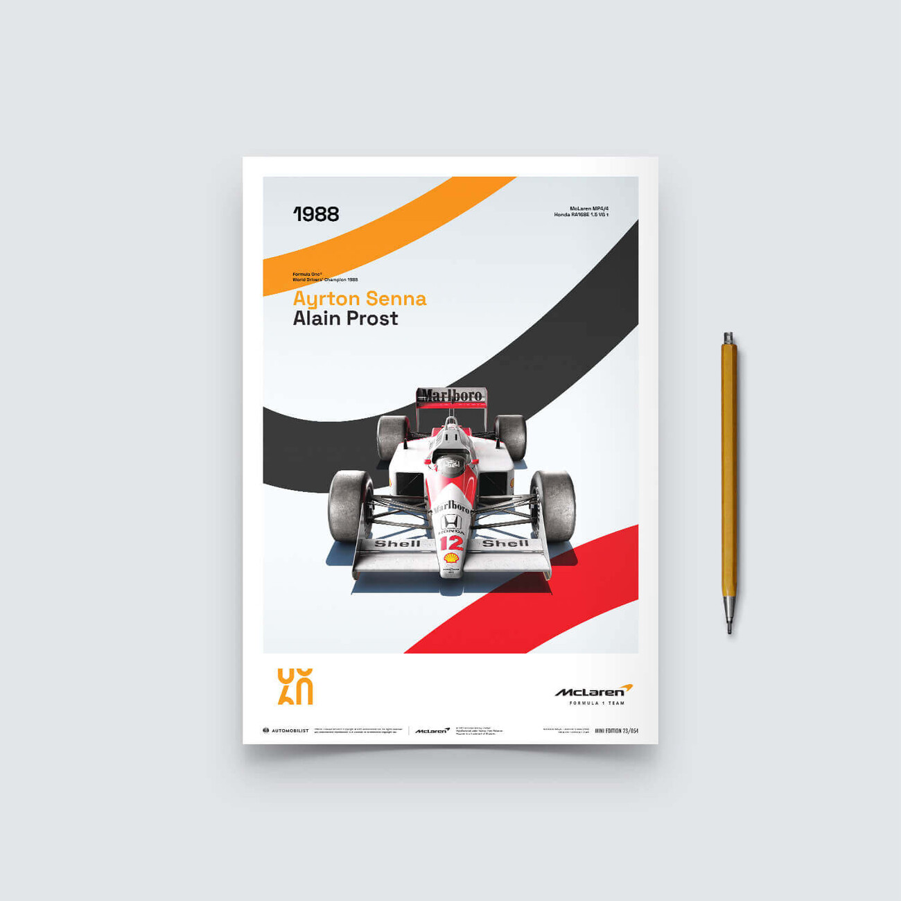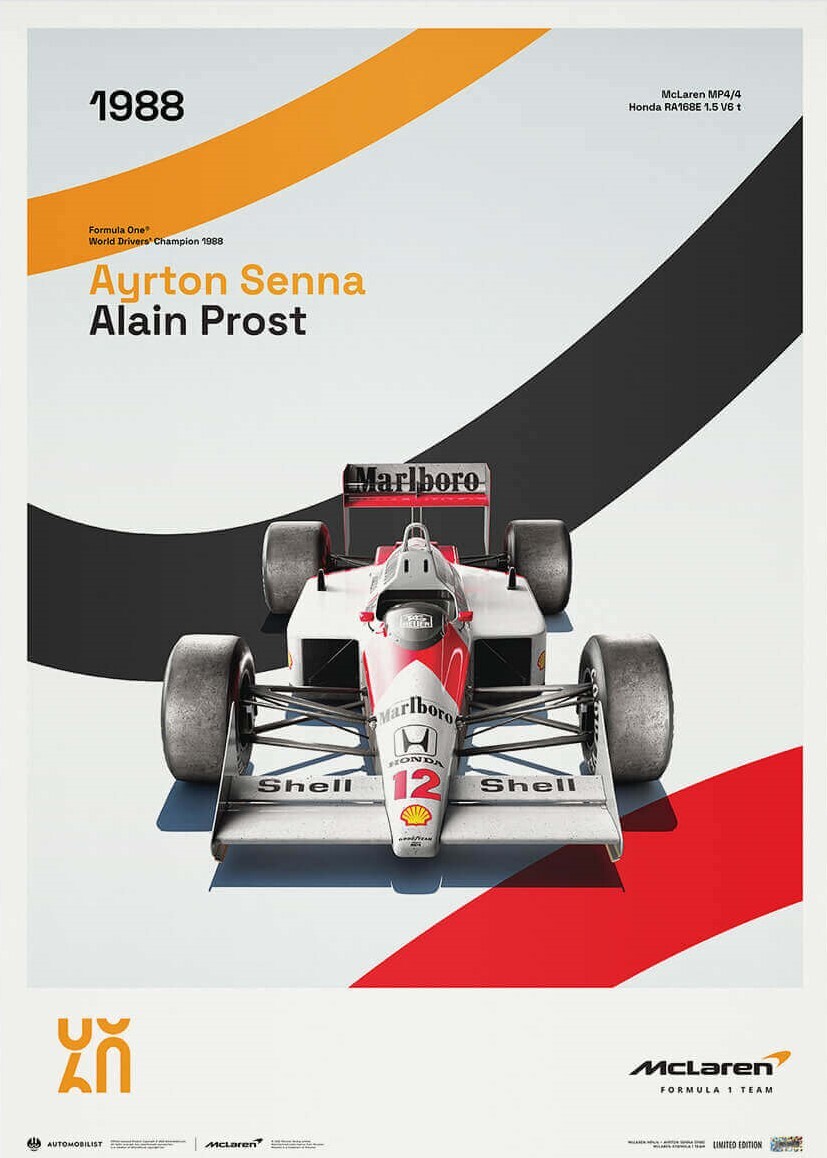 Designed by Gordon Murray, the McLaren MP4/4 dominated the Formula 1 scene in the unforgettable 1988 season. With drivers Ayrton Senna and Alain Prost at the helm, the MP4/4 secured an astounding 15 out of 16 victories, solidifying its place as one of the most successful racing cars ever created. Murray's innovative design incorporated elements from his previous Brabham BT55, resulting in the ultra low-line MP4/4. The carbon fibre/honeycomb monocoque chassis and compact Honda twin-turbo V6 engine propelled the machine to incredible speed.
